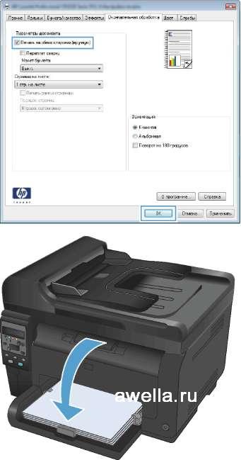 5. Установите флажок Печать на обеих сторонах (вручную). Нажмите ОК, чтобы распечатать первую сторону задания печати.
