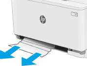 2. Если бумага видна в выходном приемнике, возьмитесь за передний край и извлеките ее. Извлеките бумагу, потянув ее обеими руками во избежание разрыва.
