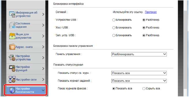 В меню [Настр. безопасн.] выберите параметр, настройку которого требуется выполнить.