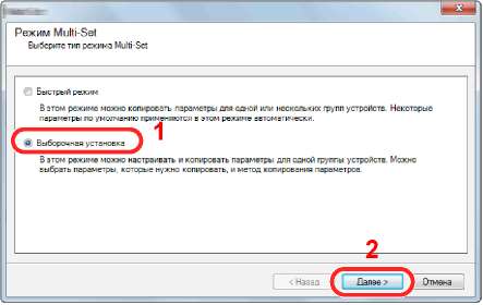 2 Выберите [Пользоват. режим] и нажмите [Далее].