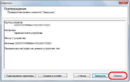 Запись данных адресной книги в аппарат