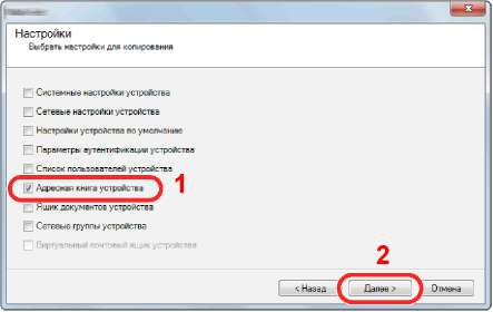 4 Выберите [Адресная книга устройства] и нажмите [Далее].