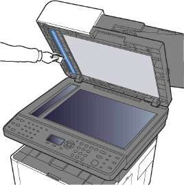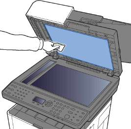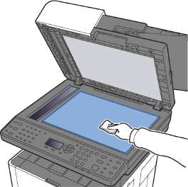 Протрите внутреннюю сторону автоподатчика оригиналов и стекло оригинала мягкой тканью, смоченной спиртом или слабым моющим средством.