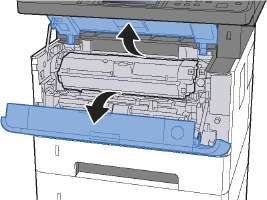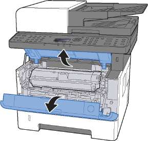 Откройте переднюю крышку и удалите застрявшую бумагу.