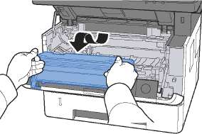 Приподнимите узел проявки вместе с контейнером с тонером и извлеките из аппарата.