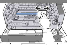 Чтобы очистить кабель наполнителя, переместите устройство для очистки основного наполнителя на барабанном блоке вперед-назад 2—3 раза.