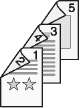 В Сшивание сверху: изображения на оборотных сторонах переворачиваются на 180°. Оборотные страницы скопированного документа, скрепленного сверху, при перелистывании имеют правильную ориентацию.