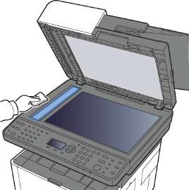 Протрите внутреннюю сторону автоподатчика оригиналов и стекло оригинала мягкой тканью, смоченной спиртом или слабым моющим средством.