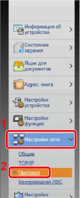 Откройте экран настроек протокола SMTP. Проверьте, установлено ли для параметра "Протокол SMTP" значение [Вкл.]. Если установлено [Откл.], щелкните [Протокол] и установите для протокола SMTP значение [Вкл].