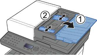 Откройте лоток для оригиналов и отрегулируйте положение направляющих ширины оригиналов.