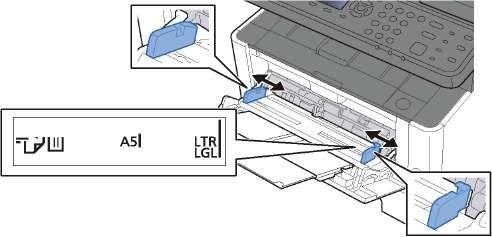 При наличии зазора между бумагой и направляющими ширины повторно отрегулируйте направляющие ширины, чтобы избежать неровной подачи и замятия бумаги.