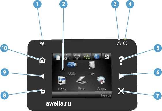 Кнопка "Справка" и индикатор: обеспечивает доступ к справочной системе панели управления