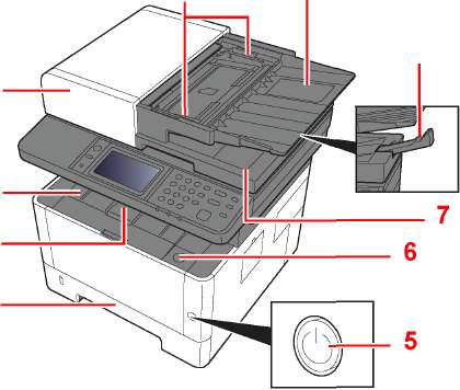 3 Клавиша [Системное меню/Счетчик]: отображение экрана системного меню/счетчика.