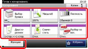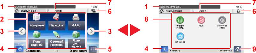 Данный экран отображается после нажатия клавиши [Главный экран] на панели управления. Соответствующий экран отображается после касания пиктограммы.