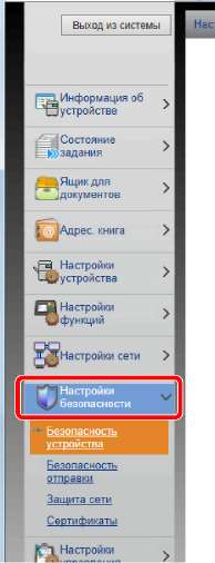 В меню [Настройки безопасности] выберите настройку, которую требуется выполнить.