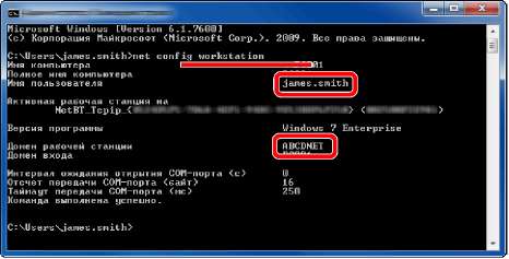 В окне командной строки введите "net config workstation" и затем нажмите [Ввод].