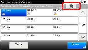 Клавиша [Системное меню/Счетчик] > [Адресная книга/Одним нажатием] > [Адресная книга]