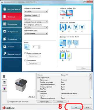 Печать с ПК на аппарате Kyocera Ecosys M2835DW