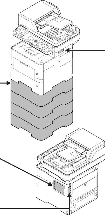 В аппарат можно установить до четырех дополнительных кассет, идентичных кассетам аппарата. Способ загрузки такой же, как и для стандартных кассет.