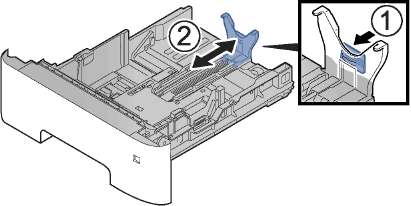1 Отрегулируйте положение направляющих ширины бумаги, расположенных на левой и правой сторонах кассеты. Прижмите регулятор ширины бумаги и сдвиньте направляющие в соответствии с требуемым форматом бумаги.