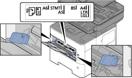 • При загрузке бумаги пользовательского формата введите формат бумаги в соответствии с разделом: Формат бумаги и тип носителя для универсального лотка (настройка универсального лотка)