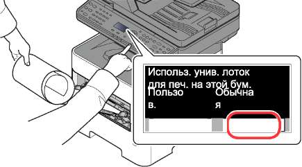 В данном случае при выполнении печати отображается сообщение на панели управления аппарата. Поместите бумагу в универсальный лоток, продолжайте ее поддерживать, чтобы она не упала, и выберите [Продолжить]. Для отмены печати выберите [Отмена].