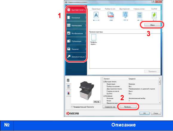 Экран настроек печати драйвера принтера позволяет задать ряд настроек, связанных с печатью.