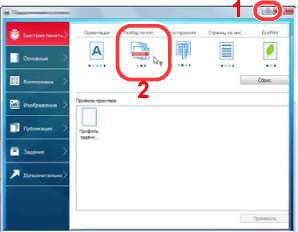 Содержит значки, которые можно использовать для простой настройки часто используемых функций. При любом нажатии ярлыка появляется изображение, напоминающее результаты печати, и применяются настройки.