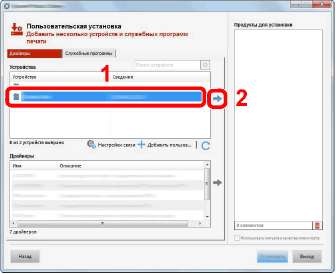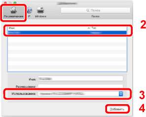 2 Выберите [По умолчанию] и нажмите на элемент, отображающийся в поле "Имя", а затем выберите драйвер в поле "Использование".