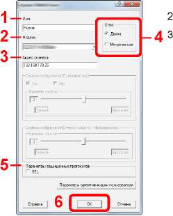 Выберите из списка данный аппарат. Введите IP-адрес аппарата или имя хоста.
