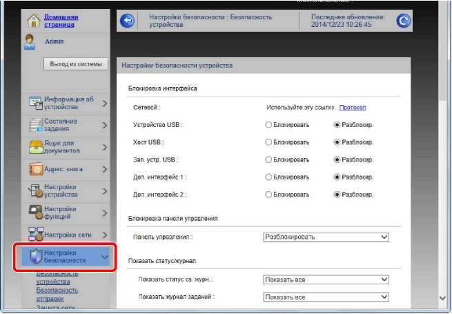 Если для настройки функции требуются полномочия администратора или включено управление регистрацией пользователей, необходимо ввести имя пользователя и пароль при входе.
