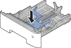 1 Отрегулируйте положение направляющих ширины бумаги, расположенных на левой и правой сторонах кассеты. Прижмите регулятор ширины бумаги и сдвиньте направляющие в соответствии с требуемым форматом бумаги.