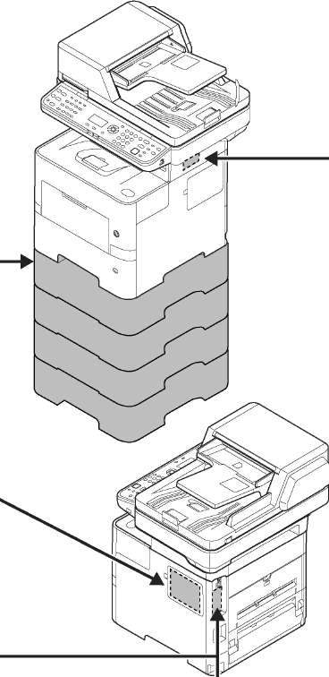 В аппарат можно установить до четырех дополнительных кассет, идентичных кассетам аппарата. Способ загрузки такой же, как и для стандартных кассет.