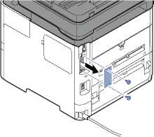 Чтобы удалить модуль памяти, снимите с аппарата правую крышку и крышку гнезда модуля памяти. Затем осторожно вытолкните два зажима гнезда. Освободите модуль памяти и извлеките его из гнезда.