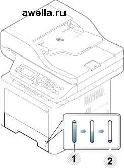 Индикатор количества бумаги показывает объем бумаги в лотке.