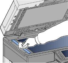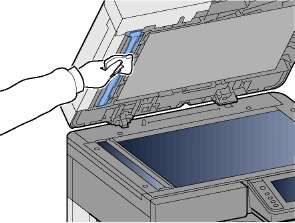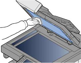 Протрите стекло оригинала, держатель оригинала и внутреннюю сторону податчика оригиналов мягкой тканью, смоченной спиртом или мягким моющим средством.