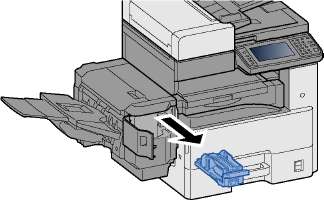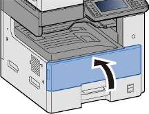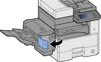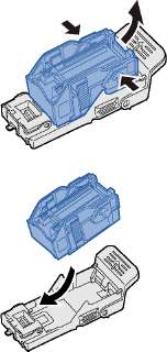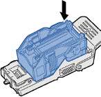 Если скрепки закончились, обратитесь к своему дилеру или представителю сервисной службы. Откройте крышку сшивателя финишера документов.