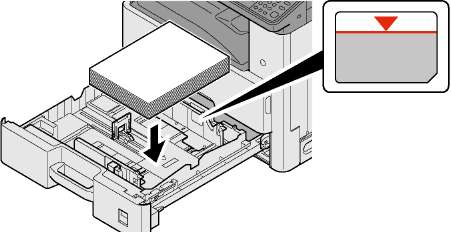 • Убедитесь, что стопка загруженной бумаги не выше индикатора уровня.