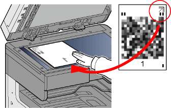 2 Как показано на рисунке, разместите на стекле бумагу стороной для печати вниз, краем со стрелками назад и закройте держатель оригинала.