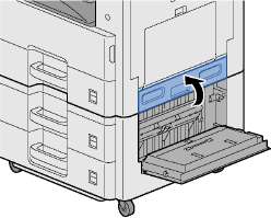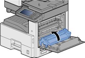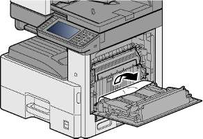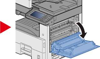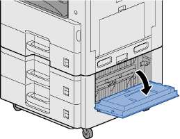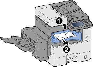 Откройте крышку переходного блока и удалите замятую бумагу.