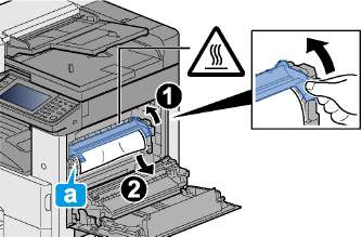 Откройте крышку термофиксатора (а) и удалите застрявшую бумагу.