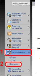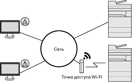 Аппарат оборудован сетевым интерфейсом, совместимым с такими сетевыми протоколами, как TCP/IP (IPv4), TCP/IP (IPv6), NetBEUI и IPSec. Он позволяет выполнять сетевую печать в Windows, Macintosh, UNIX и на других платформах. Выберите протокол TCP/IP (IPv4) для подключения к сети Windows.
