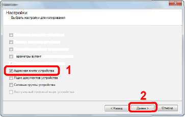4 Выберите [Адресная книга устройства] и нажмите [Далее].
