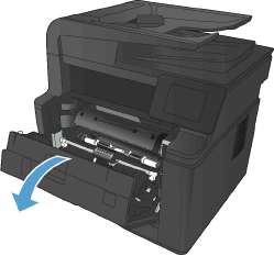 2. Если замятый лист не видно, откройте дверцу доступа к картриджу и извлеките его.