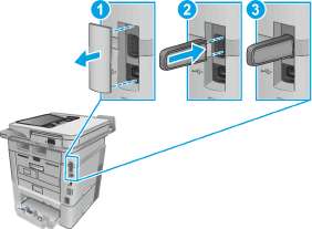 • К USB-хоста, который расположен на задней панели, необходимо подключить флэш-накопитель (USB 2.0) с минимум 1 б ГБ свободной памяти. На этом USB-накопителе хранится сохраненные задания, отправленные на принтер. При отсоединении этого USB-накопитель от принтера функция хранения заданий выключается.