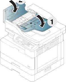 Во избежание замятий при загрузке бумаги всегда нажимайте вниз на пластину подачи лотка 1.