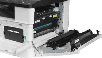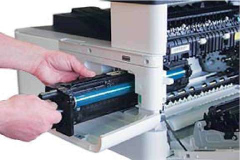 Если узел формирования изображения не проходит или не задвигается без усилий в корпус, убедитесь, что правая дверца полностью открыта, повторно совместите узел формирования изображения и установите его.