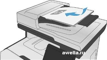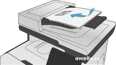 1. Поместите оригиналы в устройство подачи документов лицевой стороной вверх.