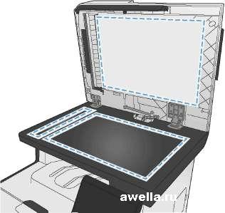 Со временем на стекле сканера и заднике белого цвета могут появиться пятна, способные повлиять на качество получаемых документов. Это может стать причиной появления вертикальных полос на копиях, отсканированных через устройство подачи документов, и точек на копиях, сделанных со стекла сканера. Чтобы очистить эти части устройства, выполните следующие действия: