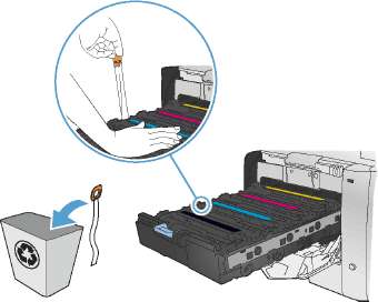 9. Вытяните язычок на левой стороне для полного удаления герметизирующей ленты. Утилизируйте герметизирующую ленту.